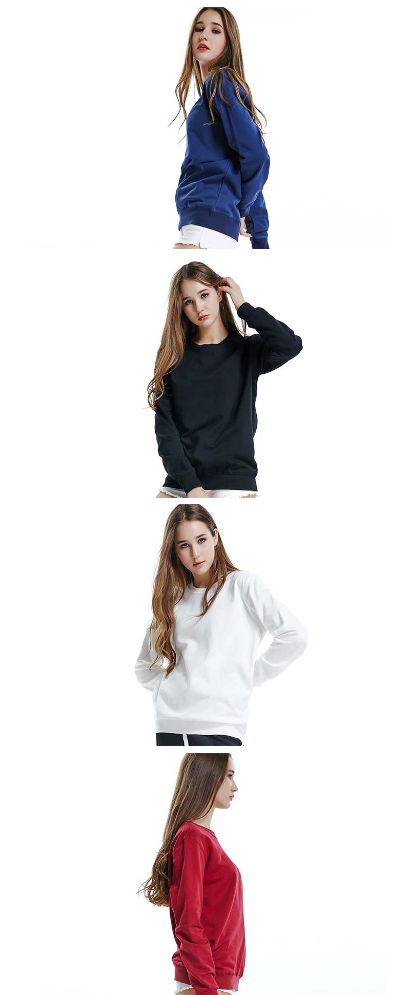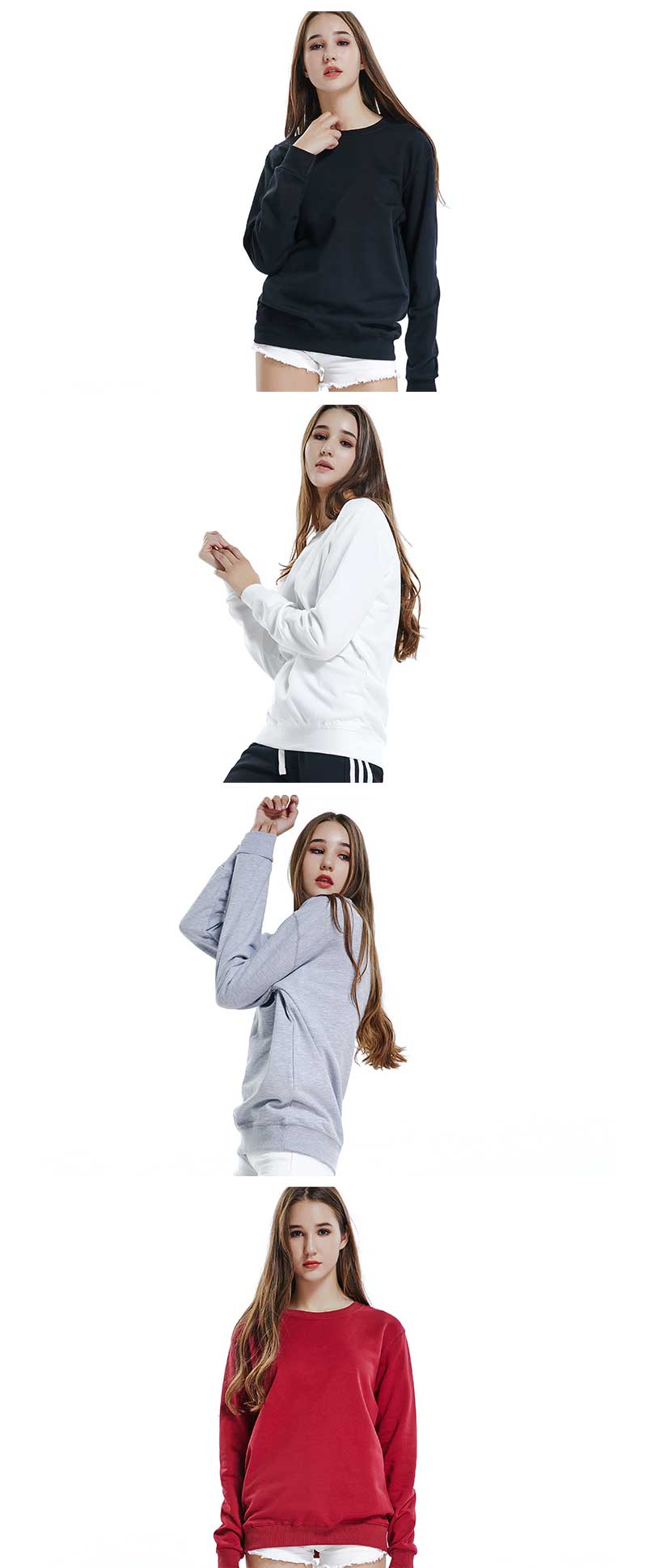 DDYN701#女款全棉毛圈圆领长袖卫衣
