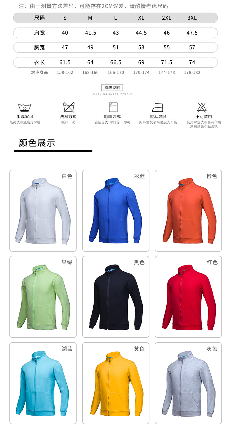 法拉绒纯棉面料拉链立领卫衣款式6种尺码 10种颜色