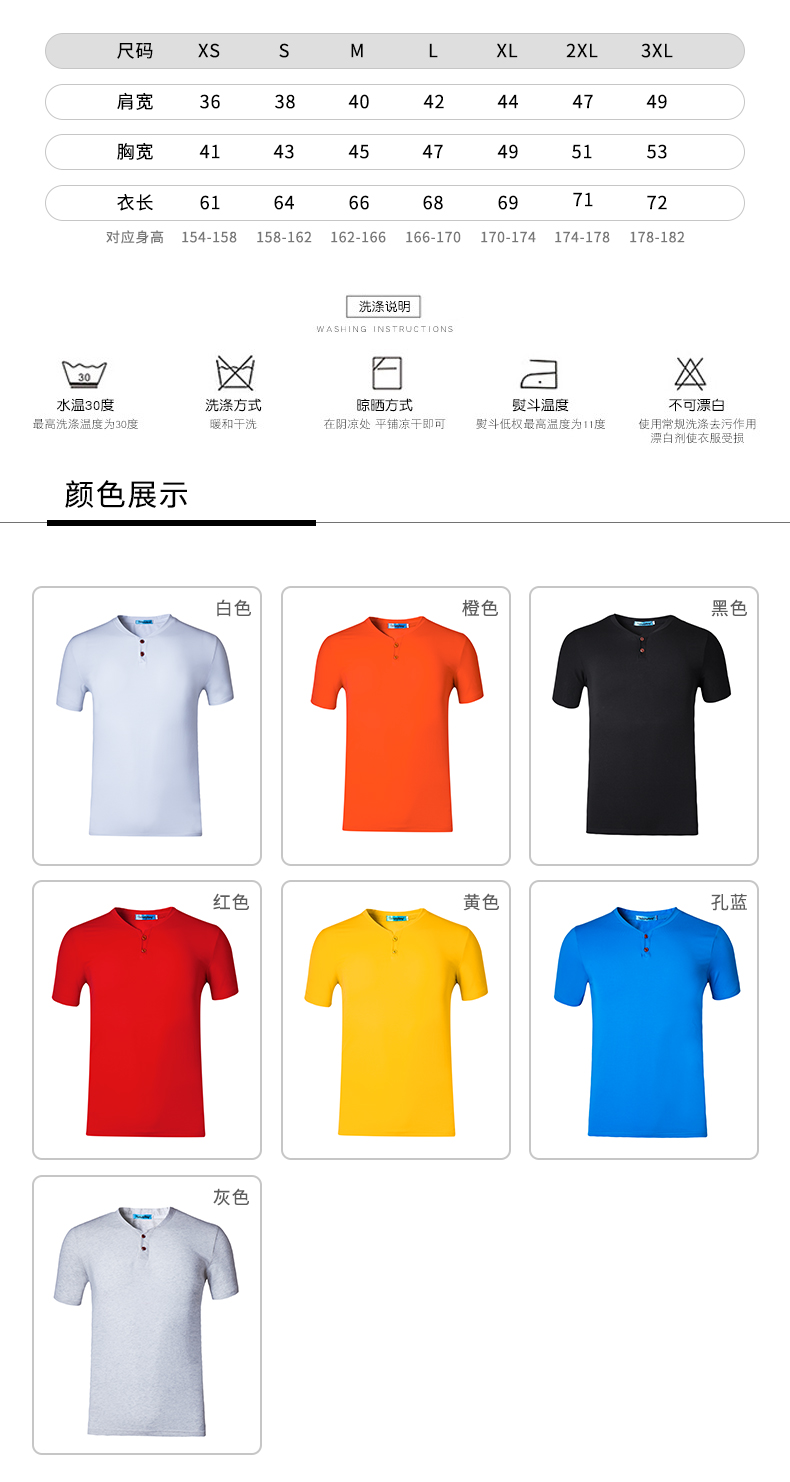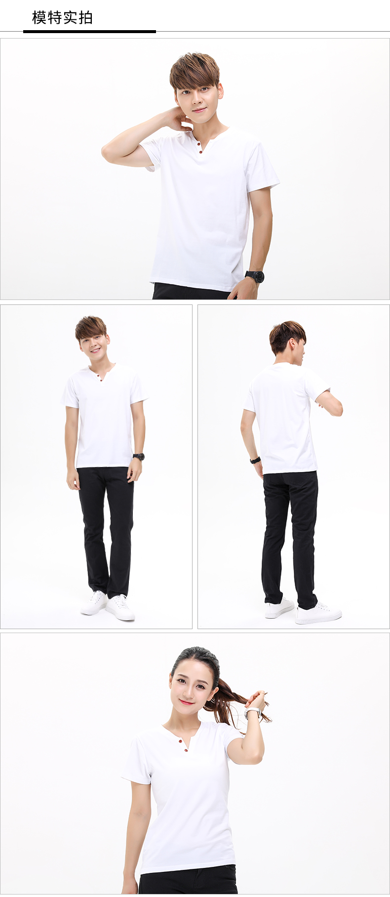 奥戴尔面料 修身微弹带扣V领短袖t恤衫经典时尚大V领设计7种尺码 7种颜色