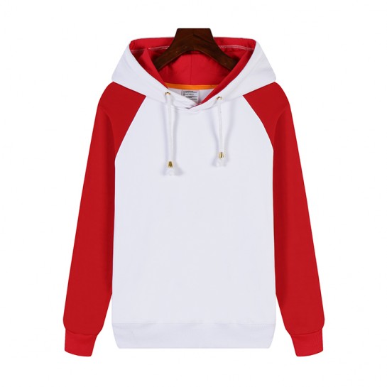CPHL915#拼色抽绳带帽套头加绒卫衣