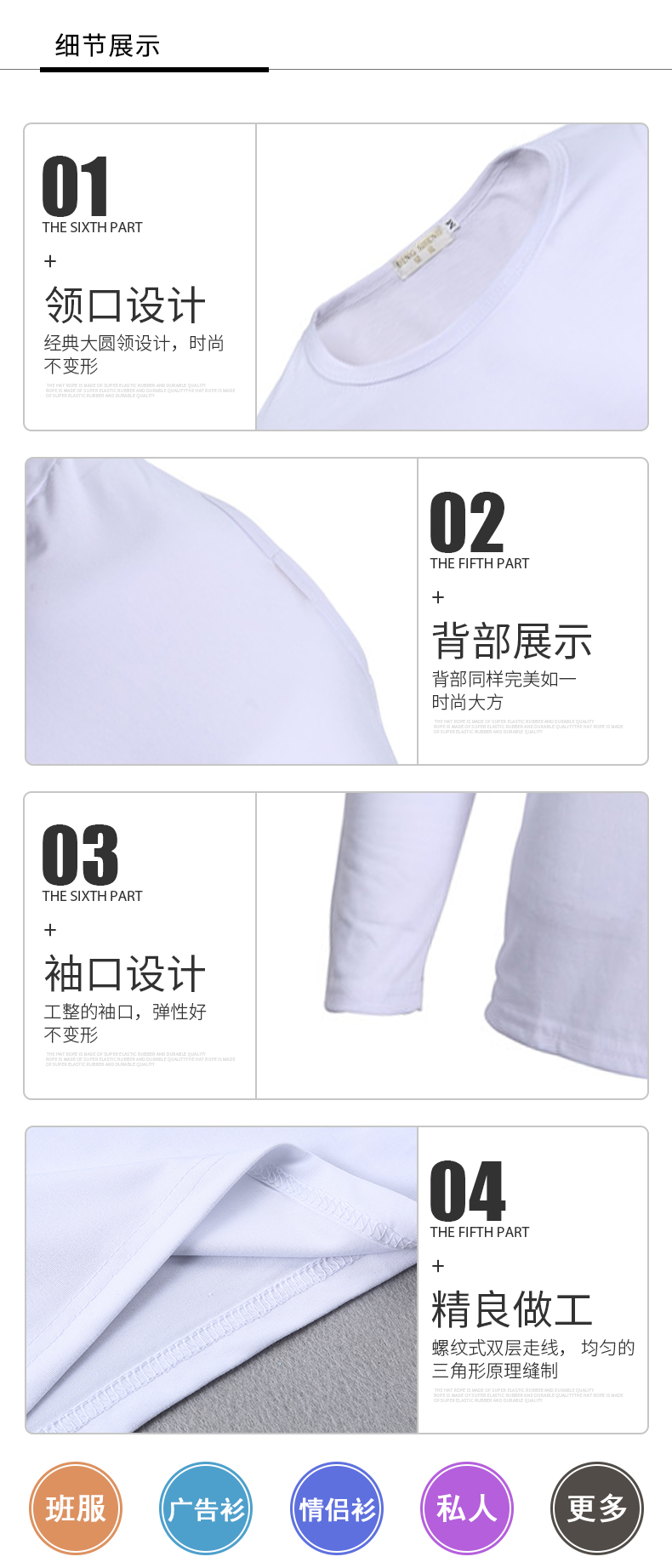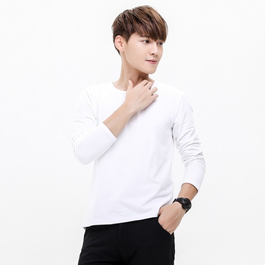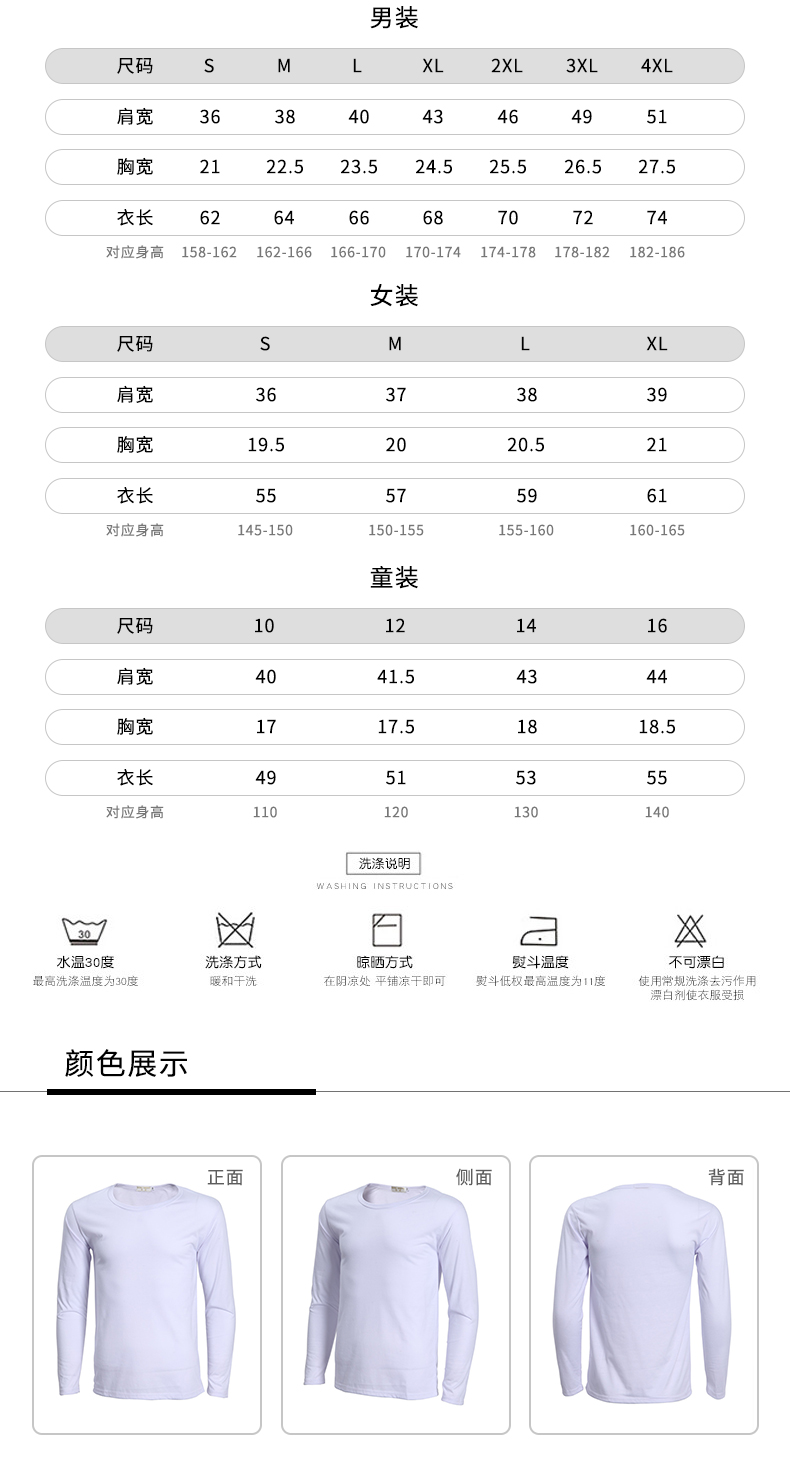莫代尔白色圆领长袖t恤经典大圆领设计 时尚不变形经典白色 分男女款 有童装