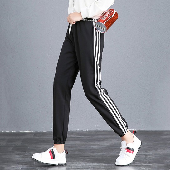 WFSS519#薄款运动卫裤带条杠