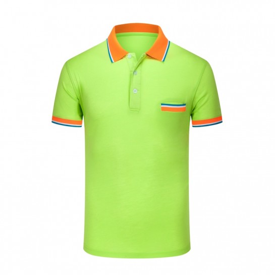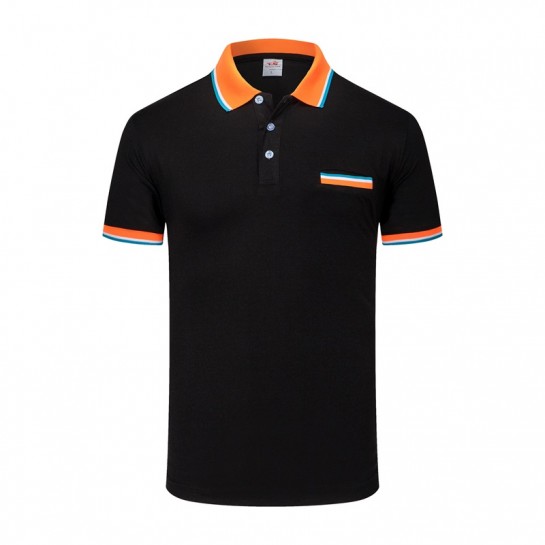 高密度CVC面料翻领撞色间色短袖POLO衫带口袋 6种尺码 12种颜色