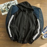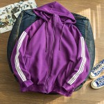 CPHL915#拼色抽绳带帽套头加绒卫衣
