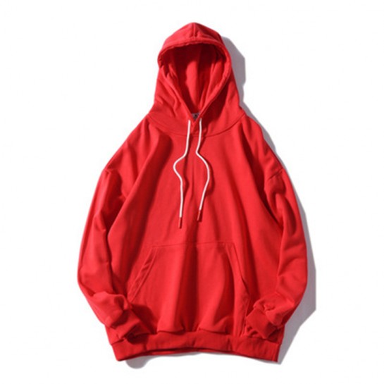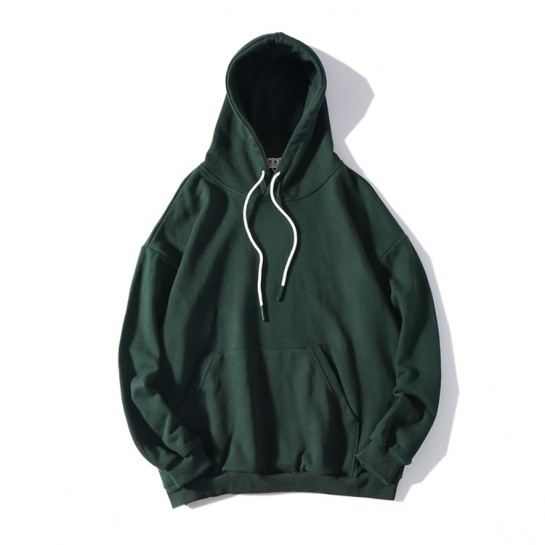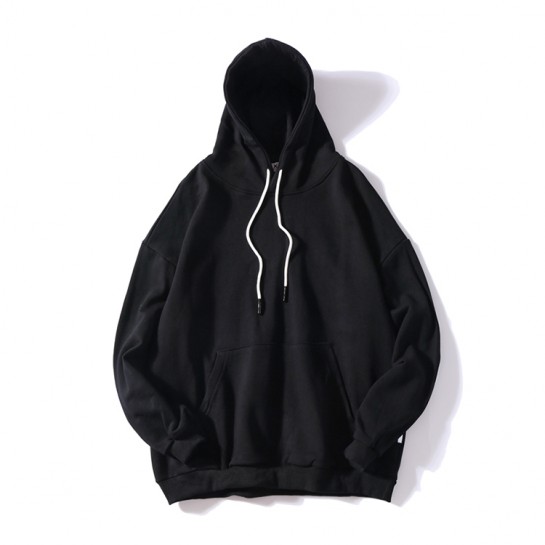 CPU895#纯色抽绳带帽套头加绒卫衣