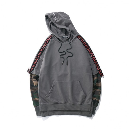 CPM209#纯棉迷彩拼袖带帽套头卫衣