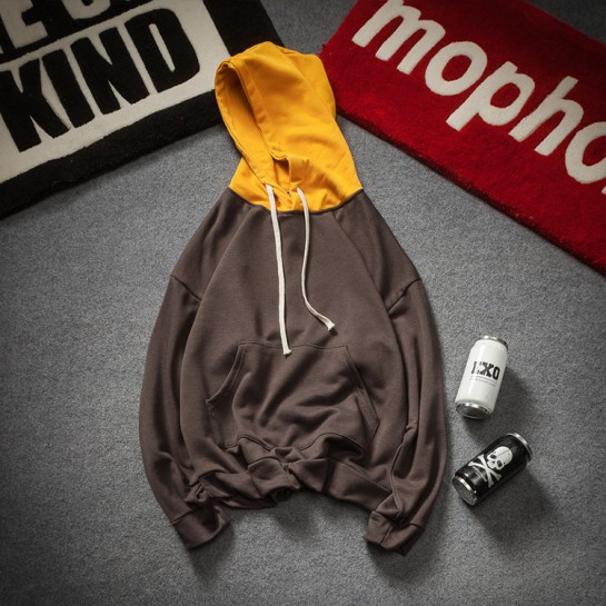 CPHL915#拼色抽绳带帽套头加绒卫衣