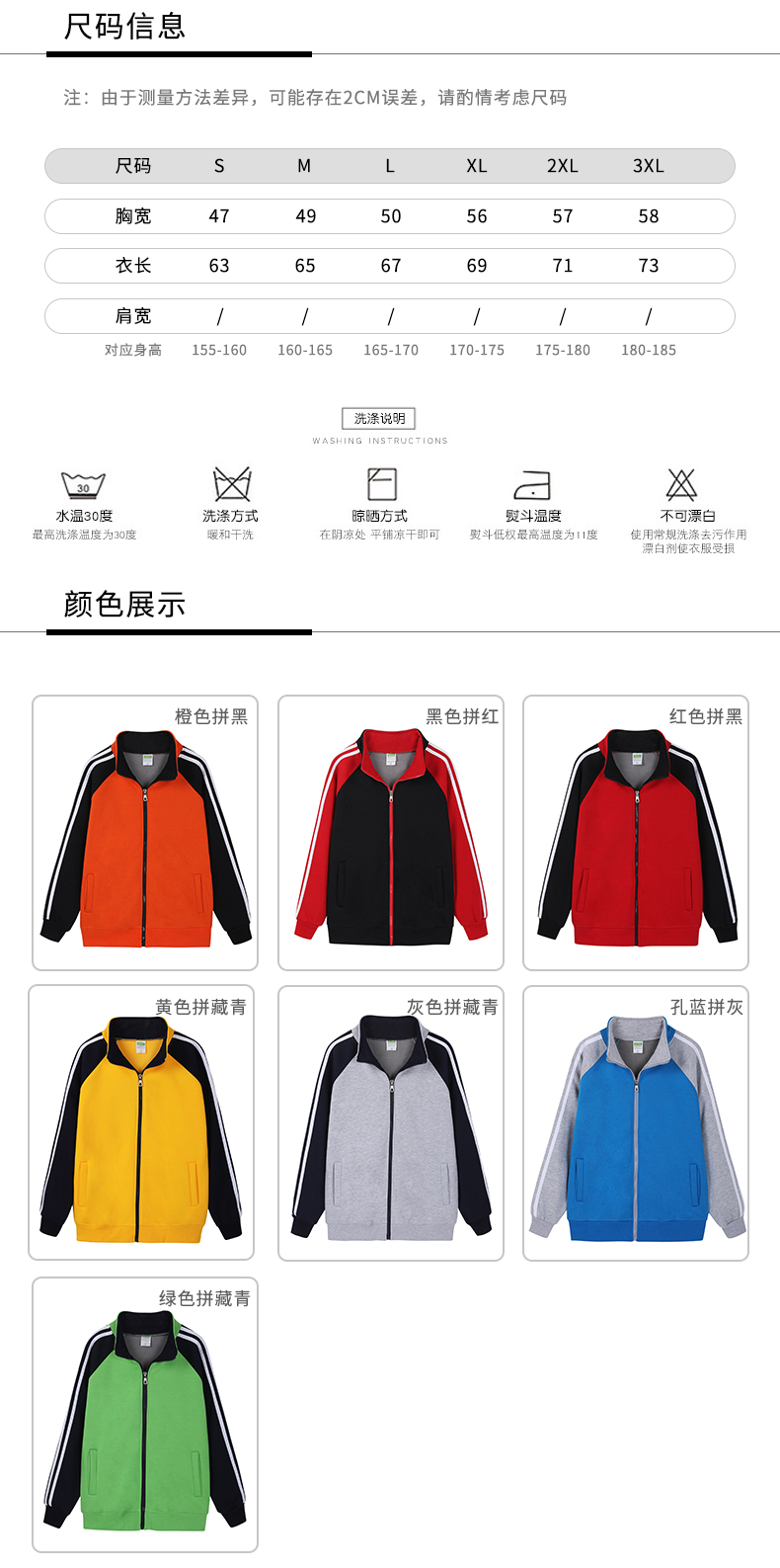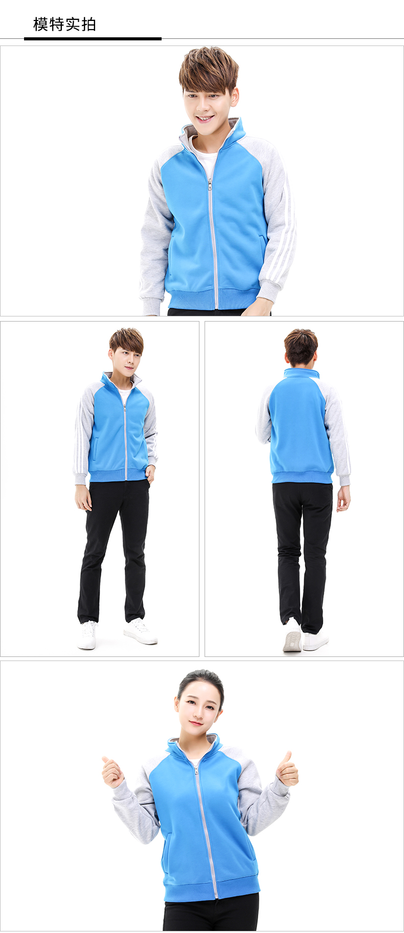 摇粒绒插肩立领卫衣经典拉链式领口设计修身 6种尺码7种颜色