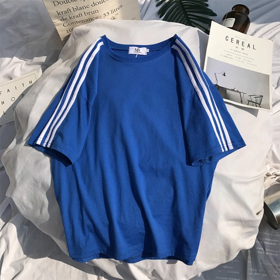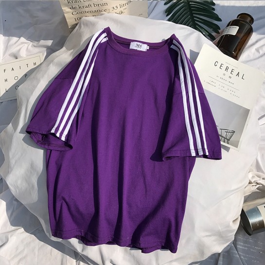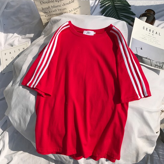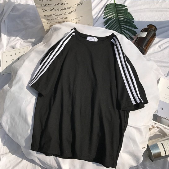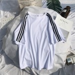 CPW001#带条杠纯色短袖圆领T恤