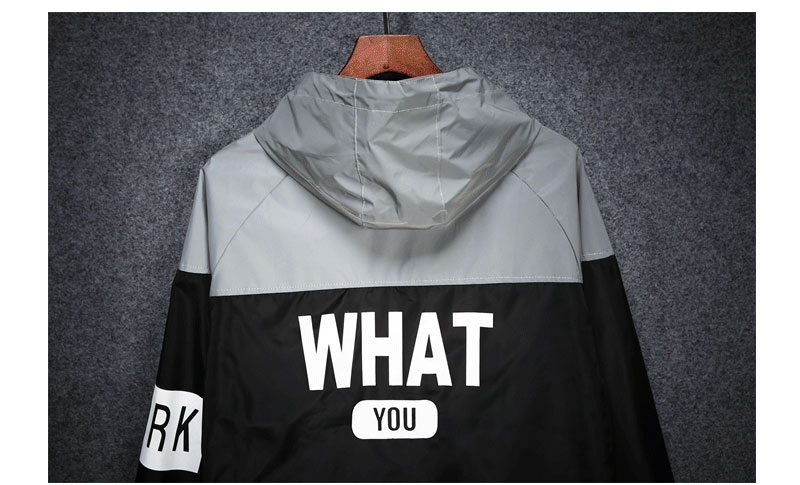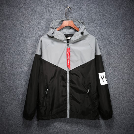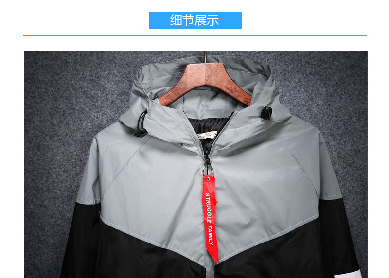 WCP875#连帽拉链拼接反光风衣