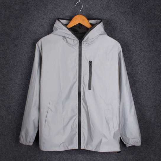 FCP169#潮流时尚全反光带帽拉链风衣