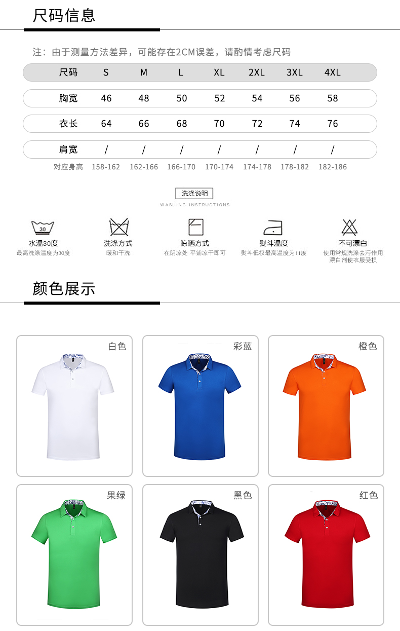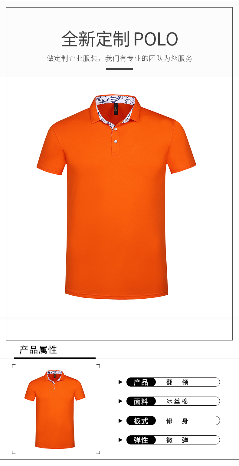 青花瓷冰丝棉翻领修身款 纯色短袖POLO衫7种尺码 8种颜色