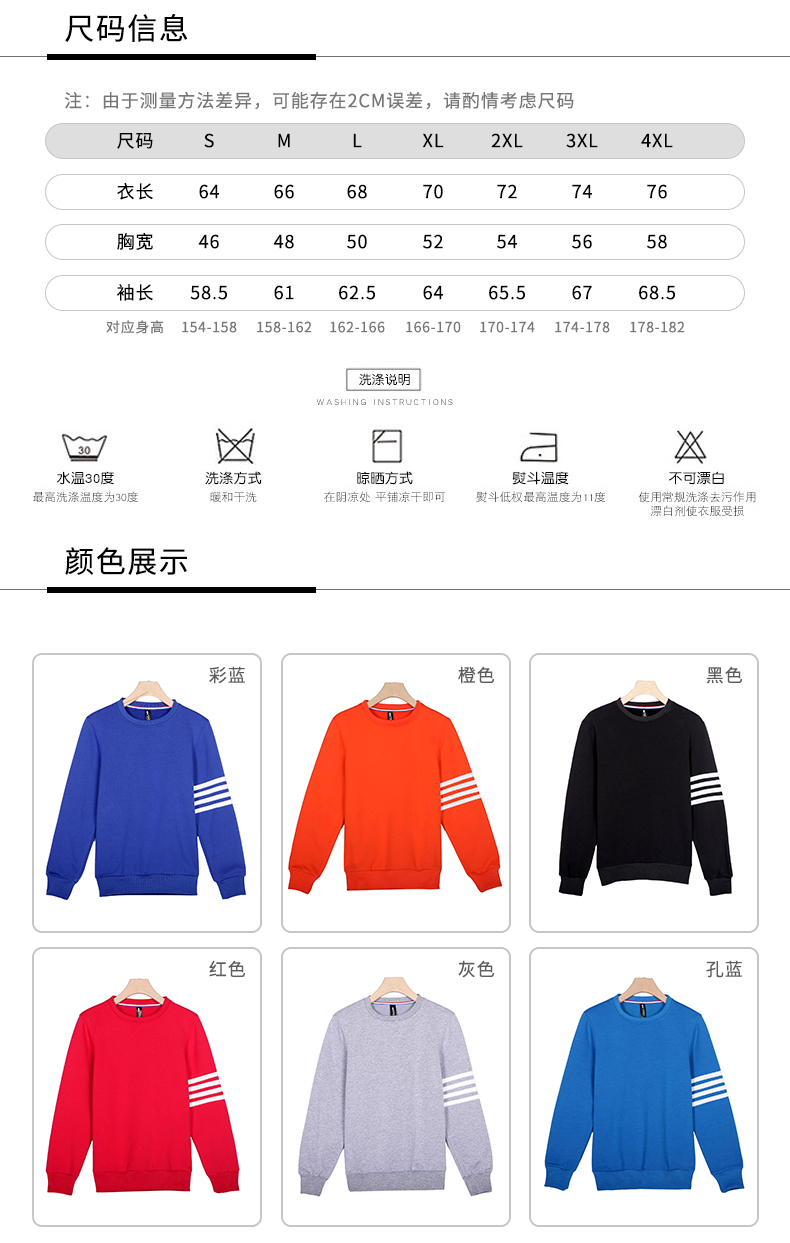 圆领卫衣带四条杠CVC水貂绒面料宽松款 7种尺码 6种颜色