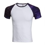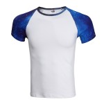 100%莫代尔圆领星空&迷彩插肩短袖9种尺码 12种颜色螺纹领口设计,时尚不变形精致的纽扣设计,时尚大方收缩弹力袖口,弹性好不变形螺纹式双层走线,均匀的三角形原理缝制