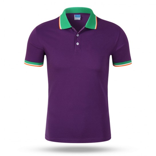 PCF123#220g全绒棉撞色间色翻领短袖
