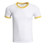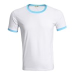 平纹CVC圆领撞边6种尺码 5种颜色螺纹领口设计,时尚不变形精致的纽扣设计,时尚大方收缩弹力袖口,弹性好不变形螺纹式双层走线,均匀的三角形原理缝制
