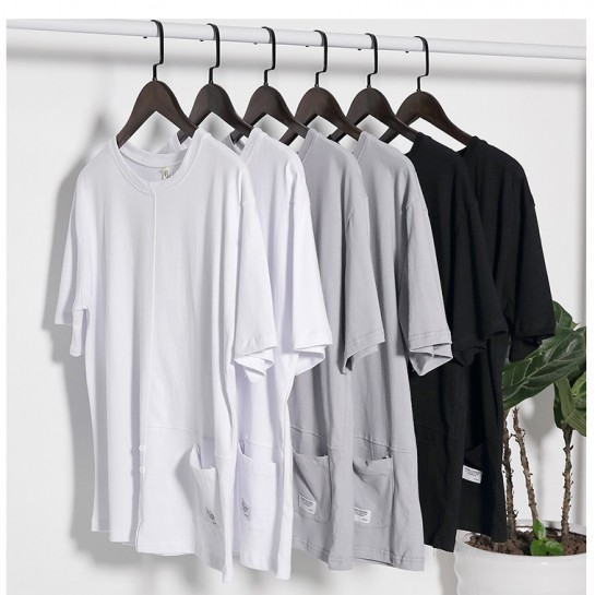 CPM016#纯棉圆领时尚带口袋T恤
