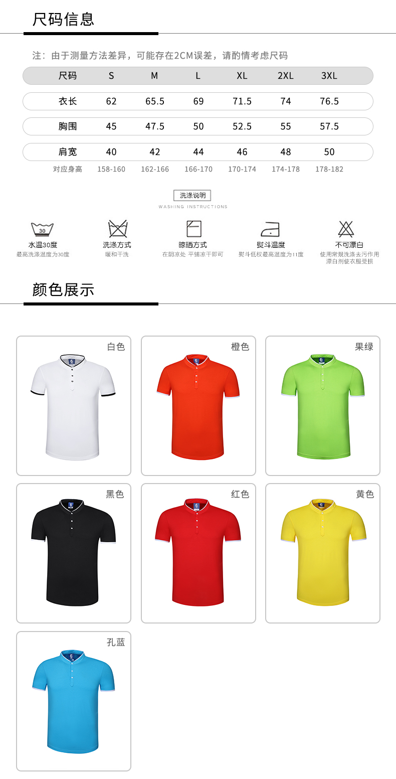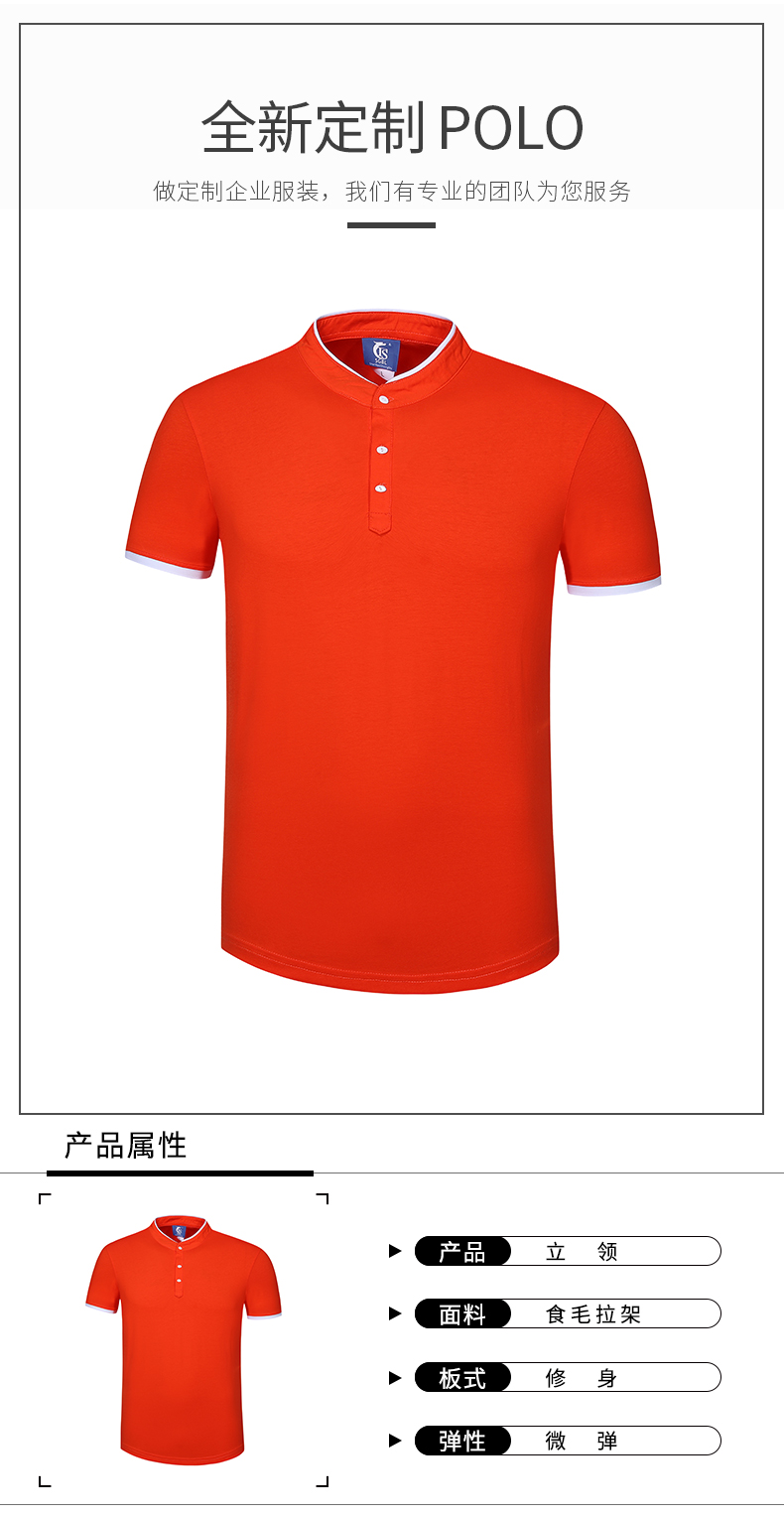 食毛拉架面料 修身款奥戴尔立领短袖POLO衫6种尺码 7种颜色
