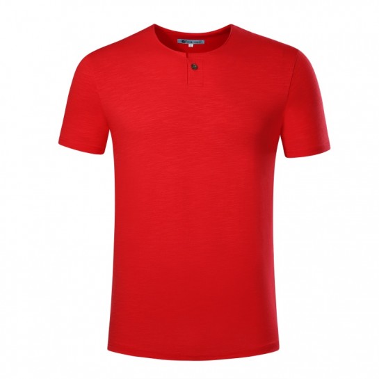 竹节纯棉面料 修身版带纽扣圆领短袖T恤衫6种尺码 8种颜色