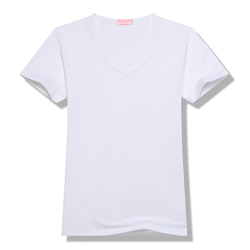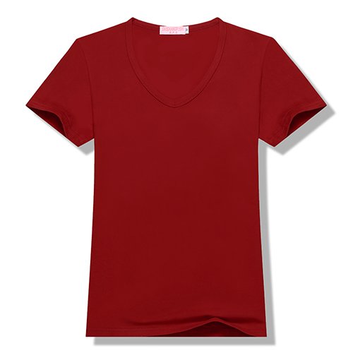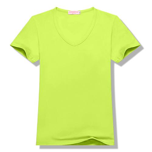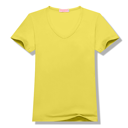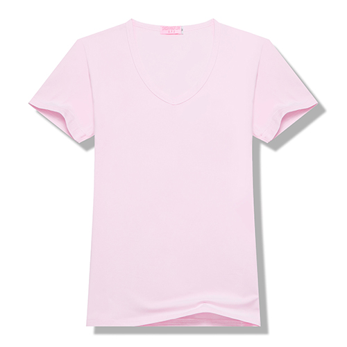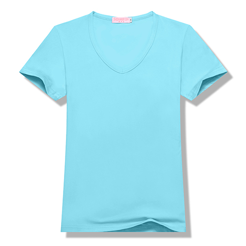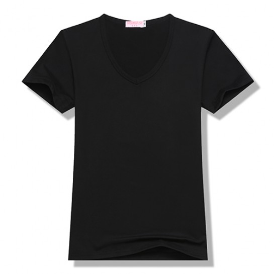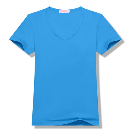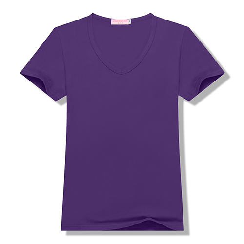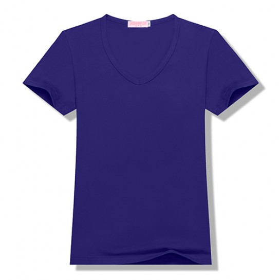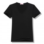 100%聚酯纤维200g莫代尔女款莫代尔纯色V领短袖T恤6种尺码 13种颜色