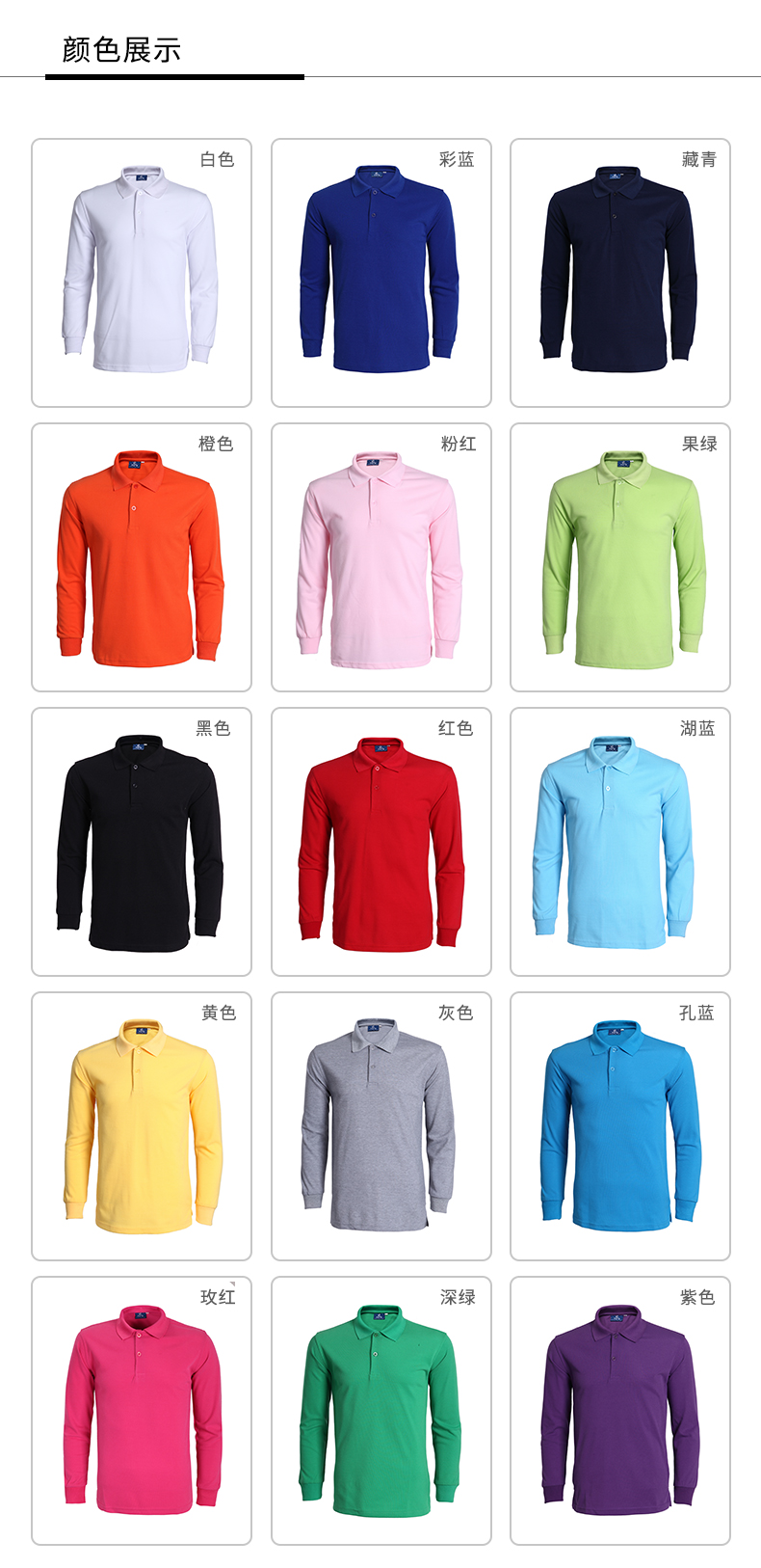 厚朱翻领长袖POLO衫珠地CVC面料男女通用款 6种尺码15种颜色
