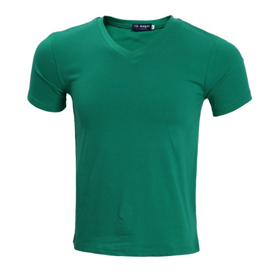 莱卡面料V领短袖t恤修身款7种尺码 17种颜色经济大V领设计,时尚不变形