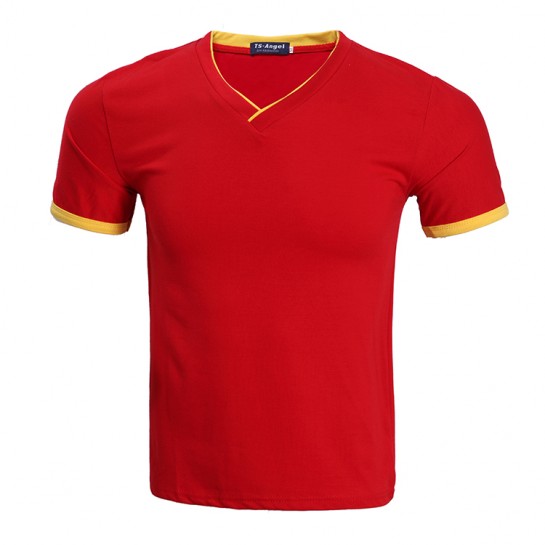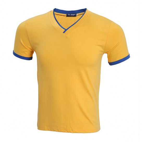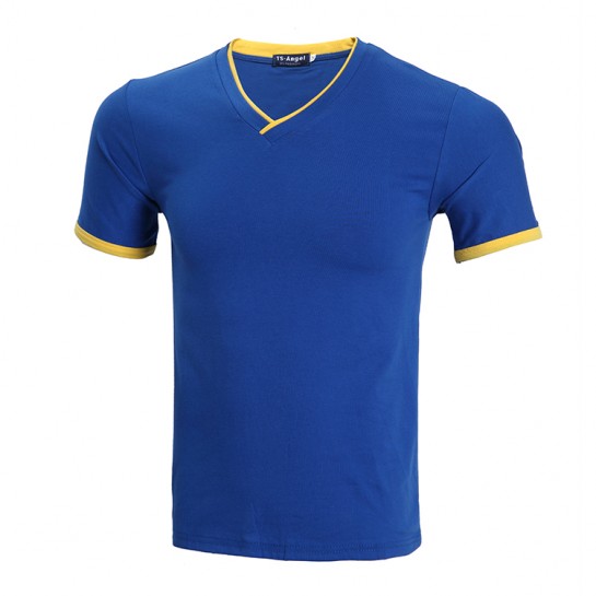 莱卡面料双V领短袖t恤修身款7种尺码 6种颜色经济大V领设计,时尚不变形