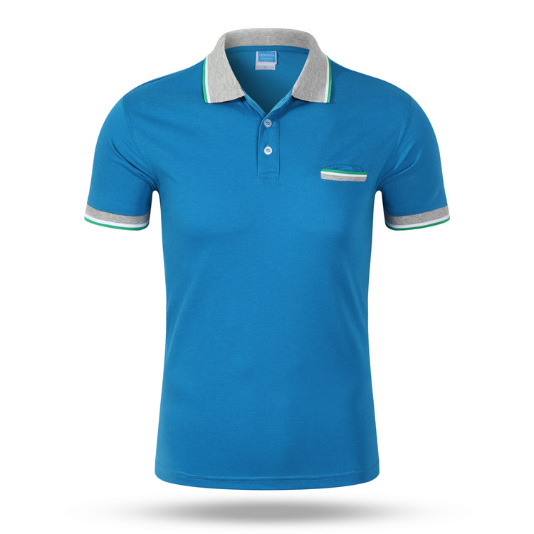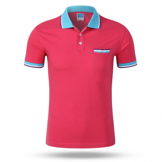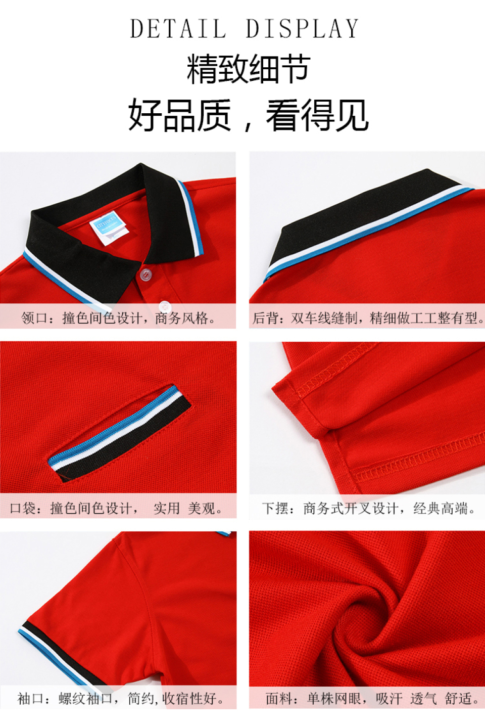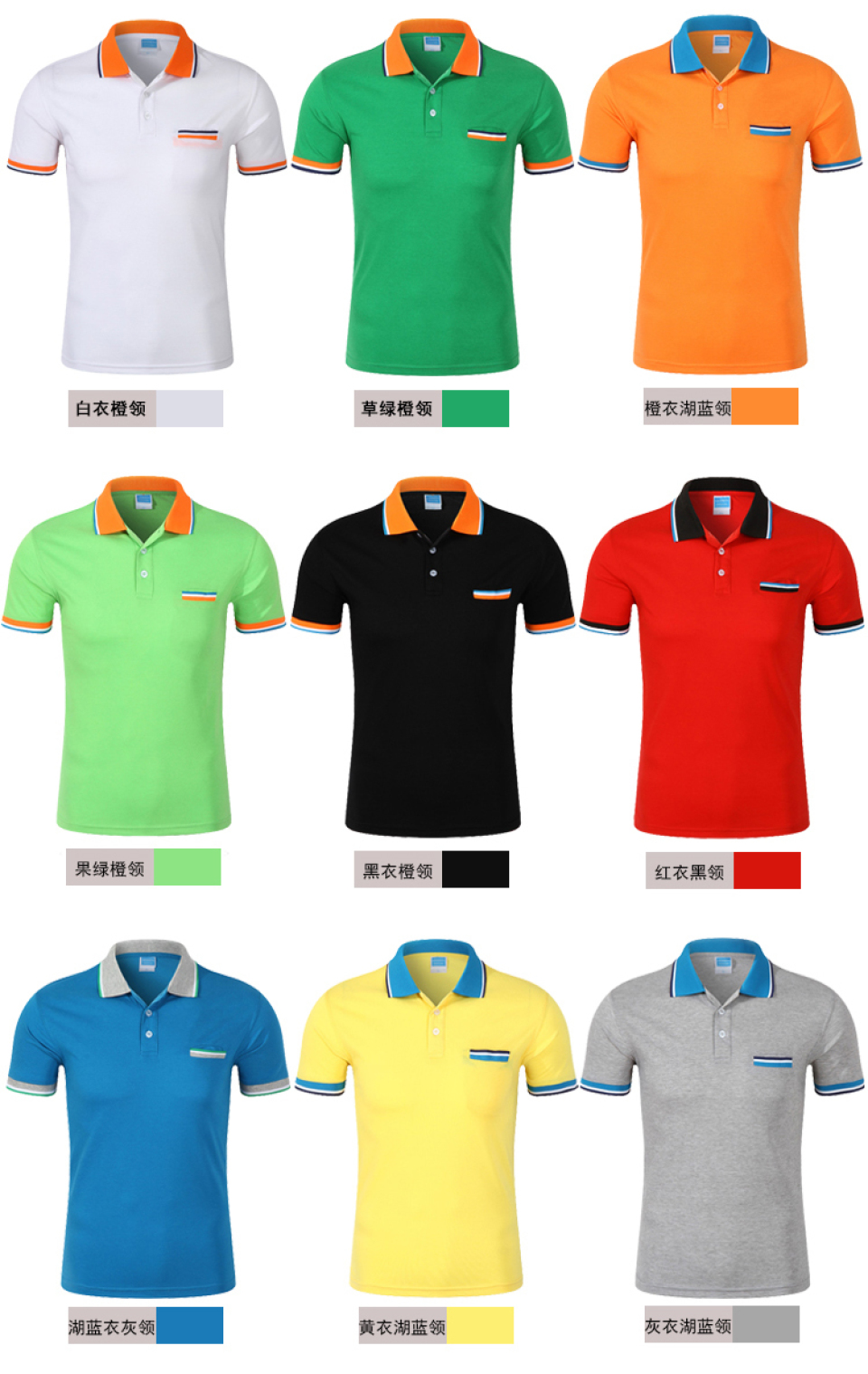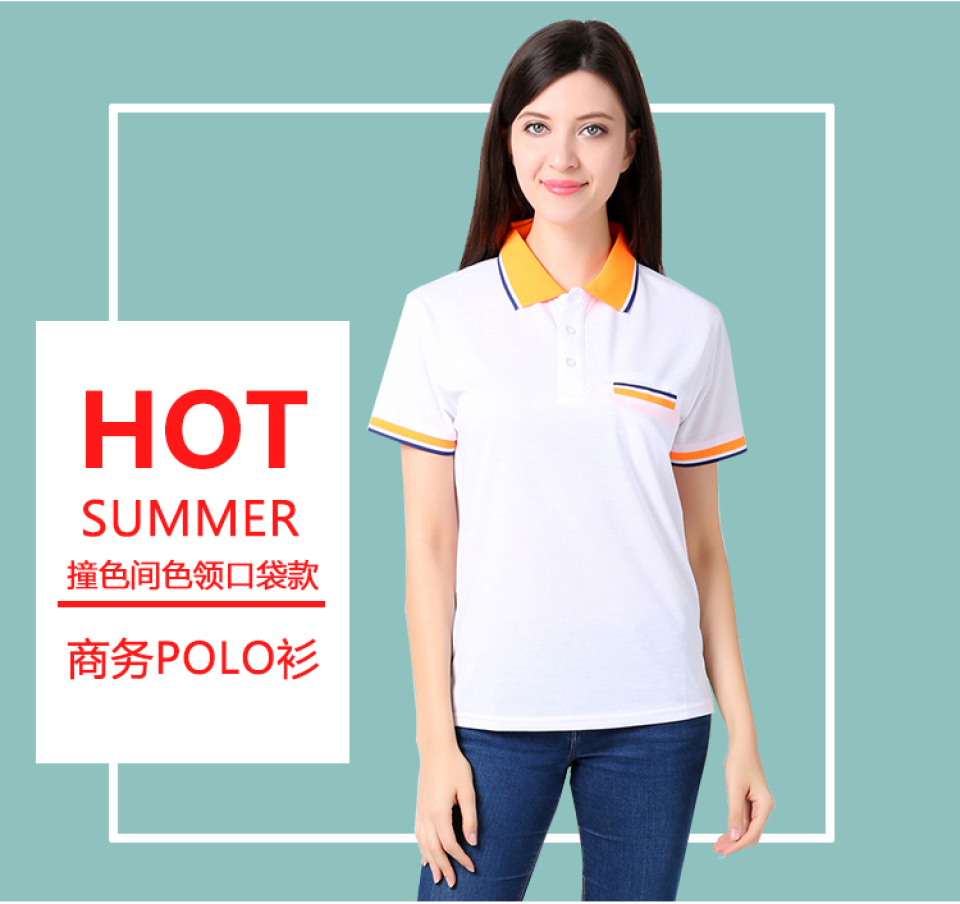 PCF121#全绒棉撞色间色领口袋款翻领短袖