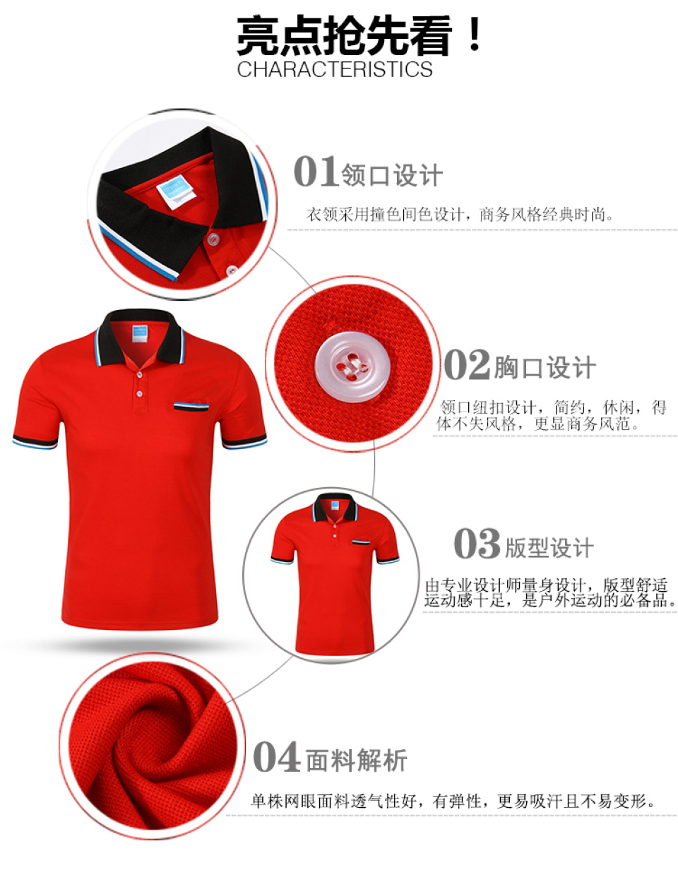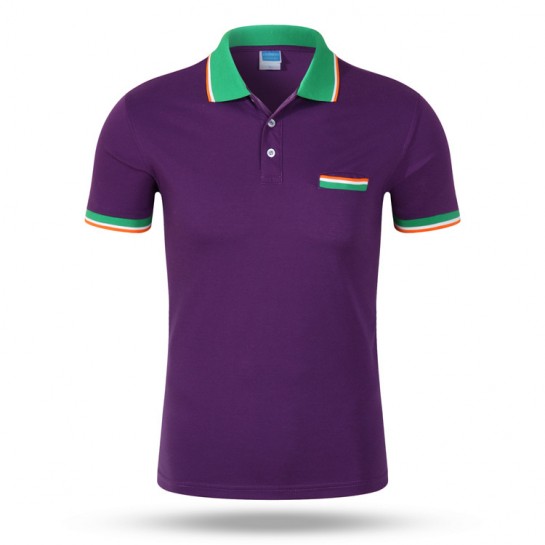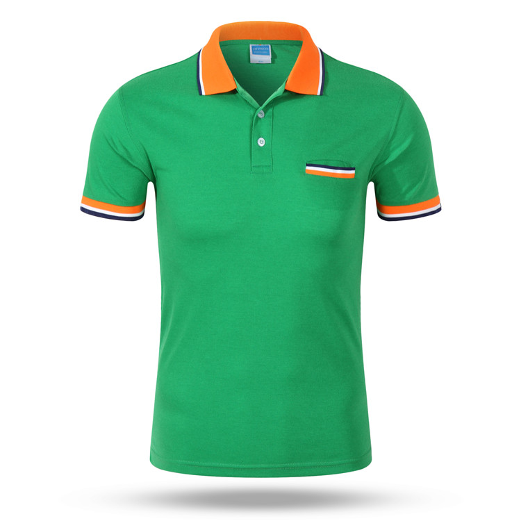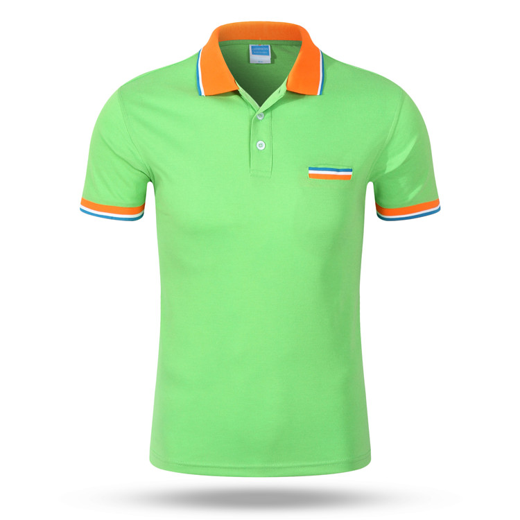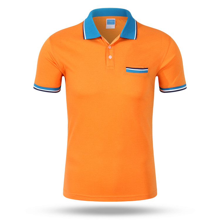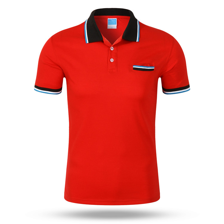 PCF121#全绒棉撞色间色领口袋款翻领短袖