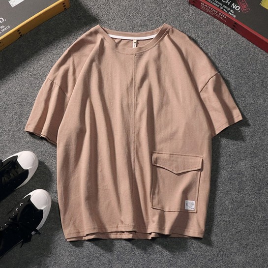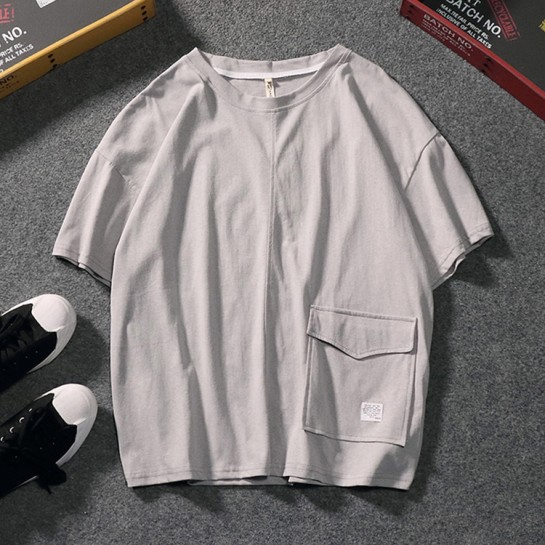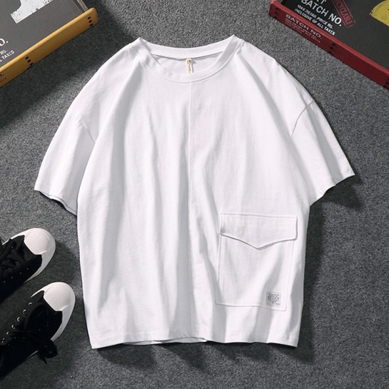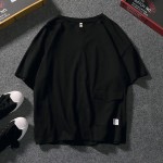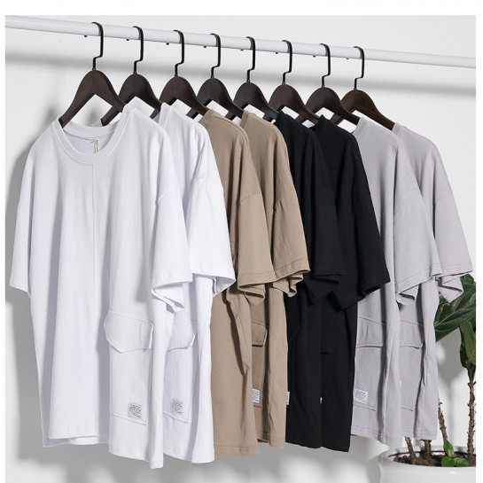 CPM029#纯棉带口袋圆领T恤衫