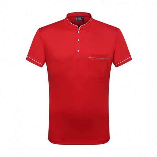 欧迈 Polo衫定制 立领短袖 PHL0012#亚麻珠花立领短袖衫
